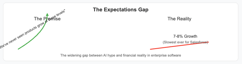 In a gleaming San Francisco conference room last month, Salesforce CEO Marc Benioff enthusiastically declared 2025 as the "absolute year of Agentforce," claiming the AI-powered platform was growing at unprecedented rates. Just minutes later, CFO Amy Weaver delivered a sobering counterpoint: expect only "modest" Agentforce sales and the company's slowest-ever growth rate of 7-8%.