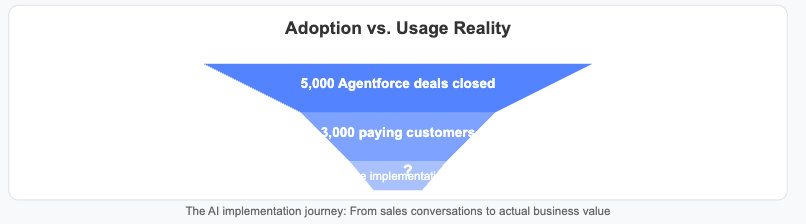 Despite the impressive technology, the adoption story tells a more nuanced tale. Of Salesforce's 5,000 reported Agentforce deals since October, only 3,000 customers are paying for it. Many are testing the waters before committing significant resources.