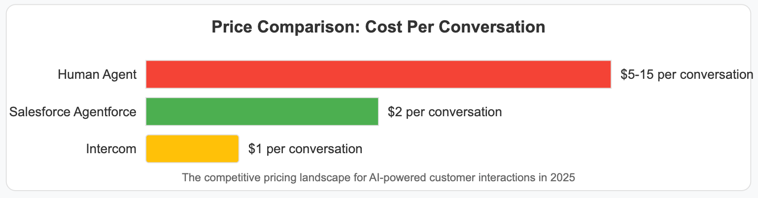 The Price Consideration: At $2 per customer service conversation, Agentforce costs twice as much as competitors like Intercom. As AI operating costs continue to fall across the industry, this premium pricing raises eyebrows.